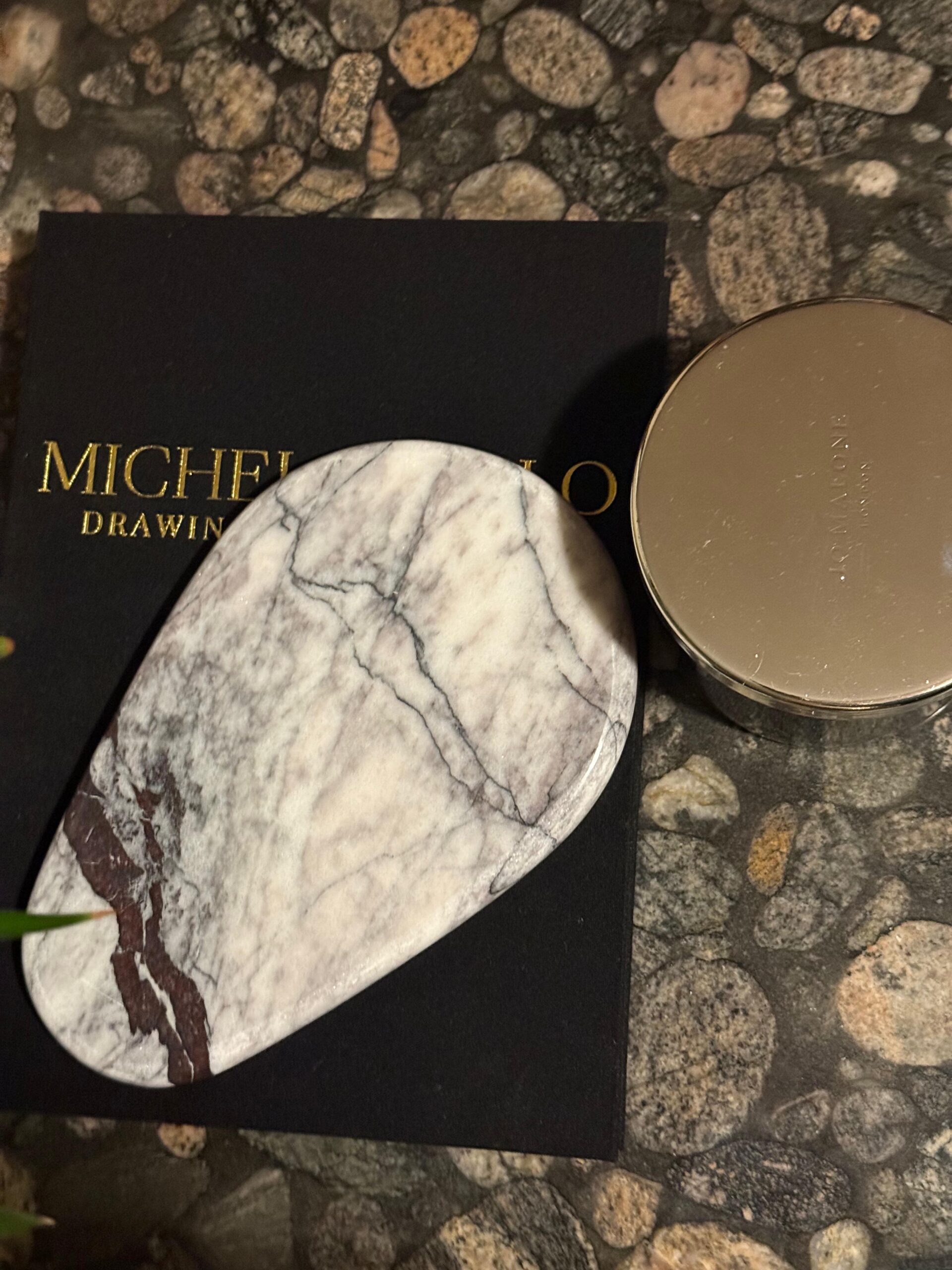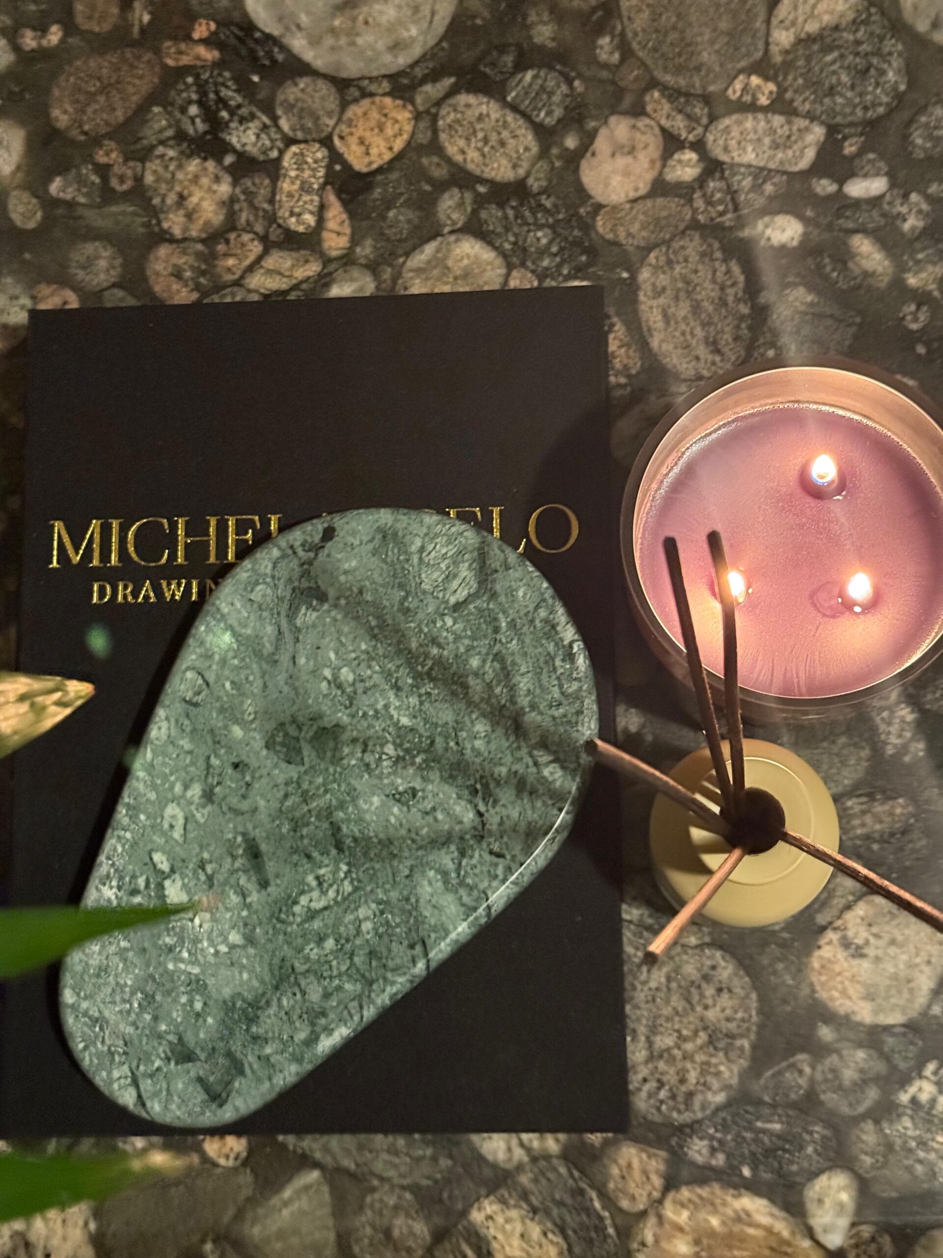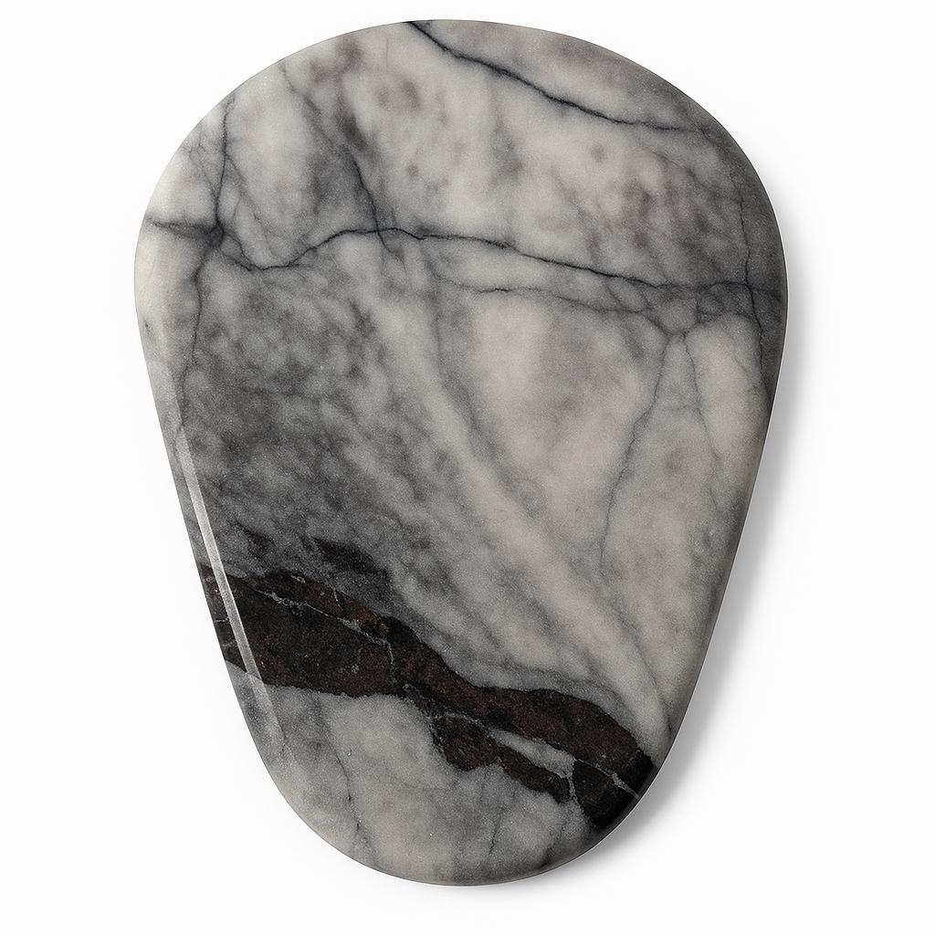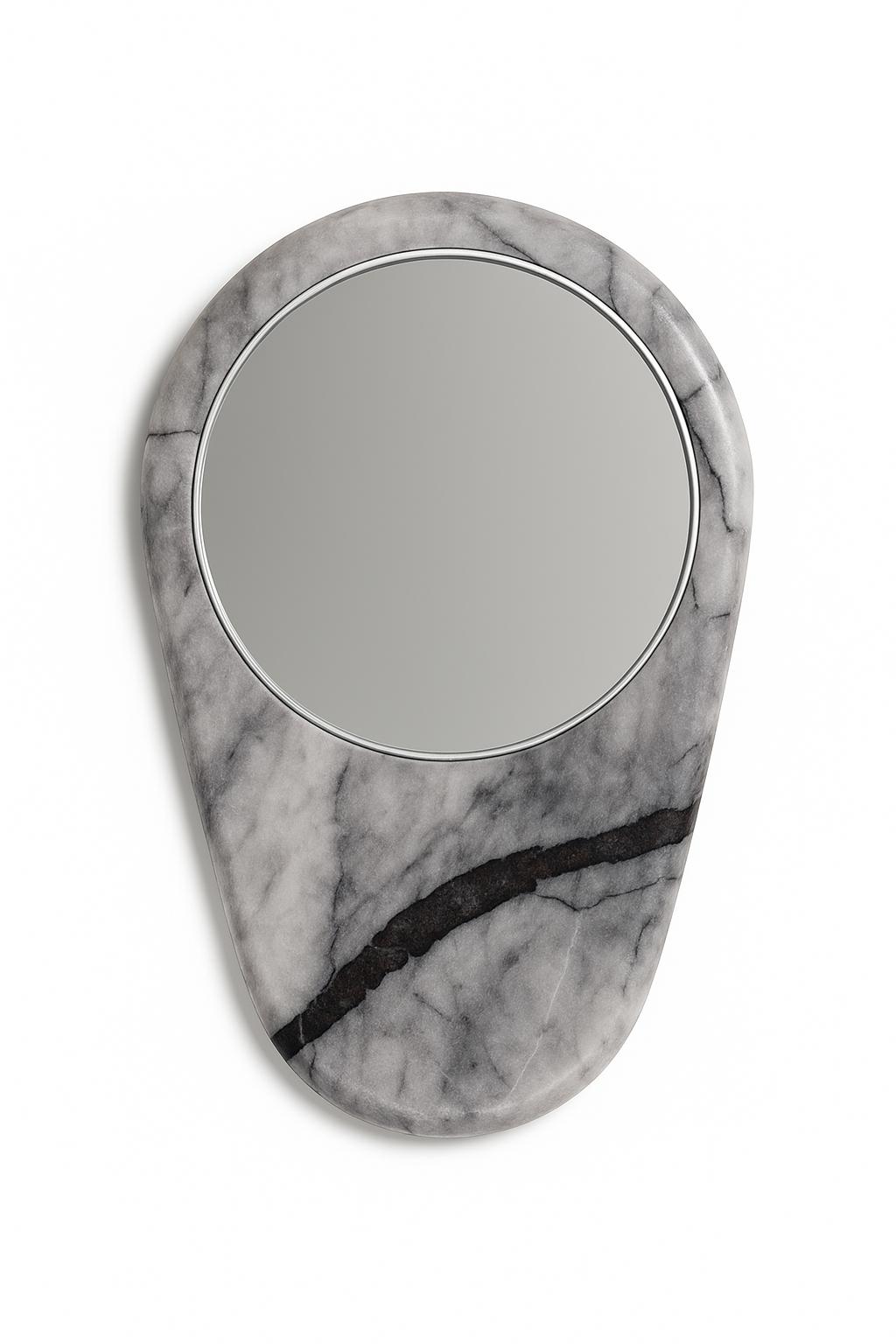 These organically shaped mirrors bring the elegance of nature into interior spaces. Each piece is crafted from a different type of natural stone — such as green onyx or light-toned onyx — making every mirror unique with its own veining and coloration. The soft, rounded form serves as both a decorative object and a functional mirror. Perfectly suited for tabletops, consoles, or styled over books, this collection offers a refined blend of modern design and natural aesthetics.